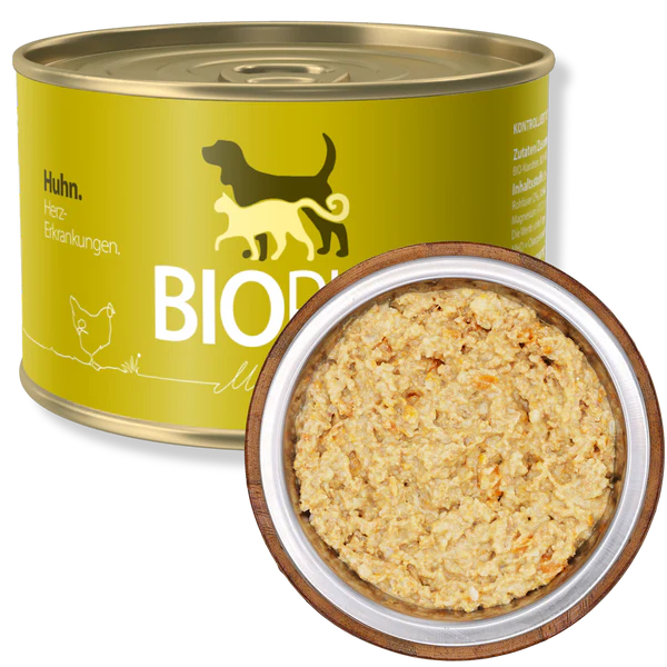 BIOPUR Diätfutter für Herz-Erkrankungen wurde speziell für Hunde mit chronischer Herzinsuffizienz, Herzerkrankungen oder Bluthochdruck entwickelt. Die gezielte Rezeptur kann die Herzfunktion unterstützen und die Durchblutung fördern. Mit hochwertigem Bio-Huhnmuskelfleisch, nährstoffreichen Bio-Karotten und leicht verdaulichem Bio-Reis, liefert es eine optimale Energiequelle, ohne das Herz zusätzlich zu belasten. Bio-Hühnerleber versorgt deinen Hund mit essenziellen Vitaminen, während Bio-Sonnenblumenöl wertvolle ungesättigte Fettsäuren für eine gesunde Herzfunktion bietet. Eine schonende und ausgewogene Ernährung für mehr Vitalität und Lebensqualität!